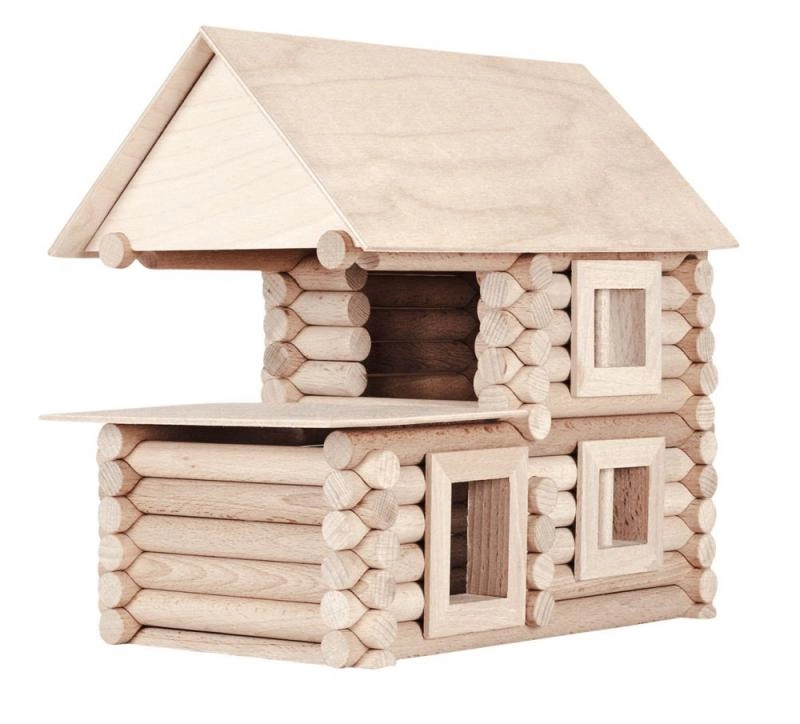 Būvējiet guļbūves, namiņus un vienkāršus tiltiņus. Daudzveidīgā sistēma attīsta iztēli un telpisko uztveri.