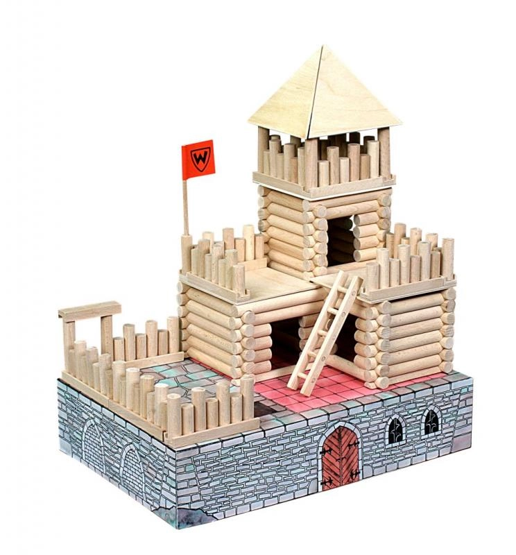 Uzbūvējiet savu viduslaiku pili ar daudzveidīgo komplektu Vario Fort! Šis konstruktors ir izgatavots no masīva dižskābarža koka un ļauj salikt pili vairākās dažādās versijās.