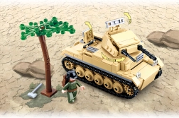 Sluban WWII Vācu tanks Panzer II piedāvā aizraujošu pieredzi, veidojot savu militāro modeli. Izgatavots no kvalitatīva ABS plastmasas, tas nodrošina drošību un izturību. Var kombinēt ar citiem konstruktoriem, paplašinot spēles iespējas.