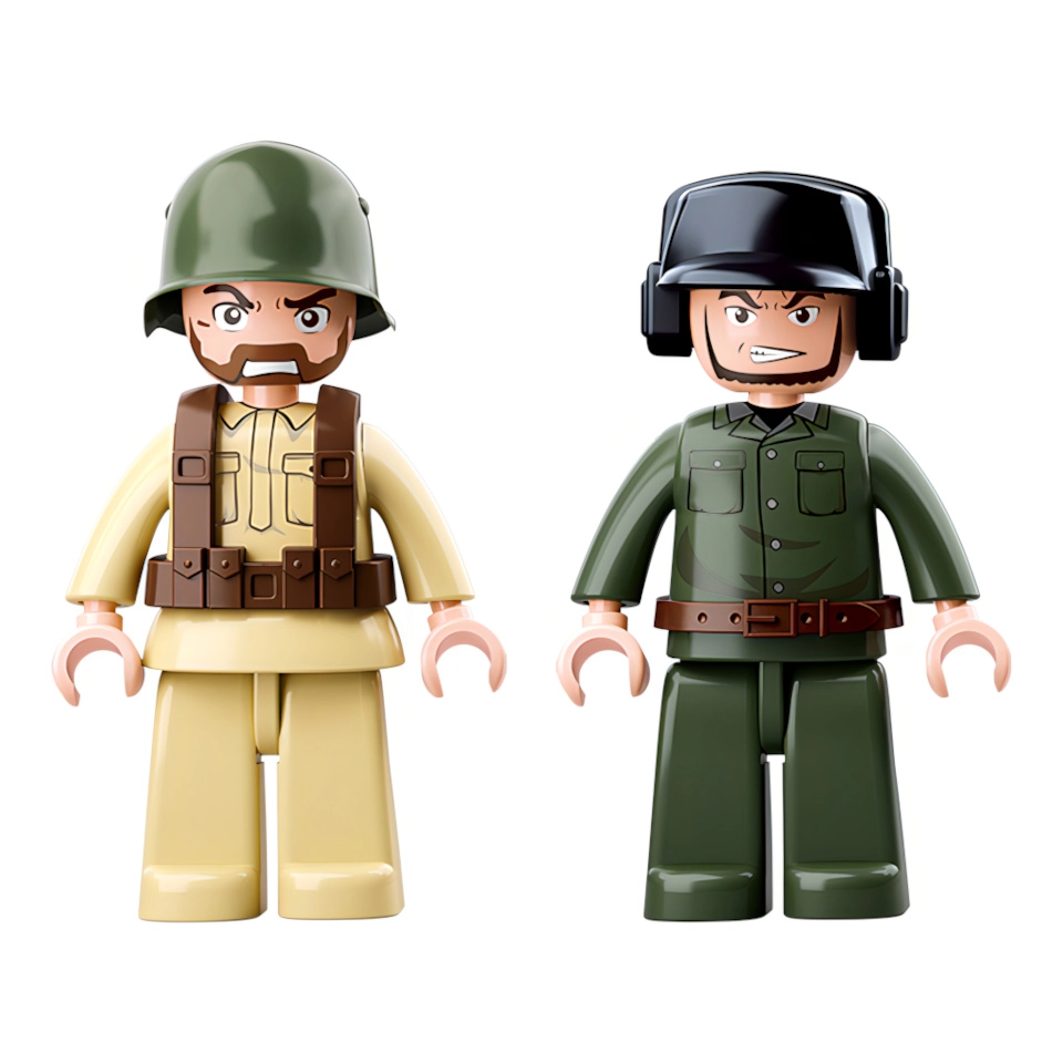 Divas karavīru figūriņas ar kustīgām ekstremitātēm, kas palielina spēles interaktivitāti.