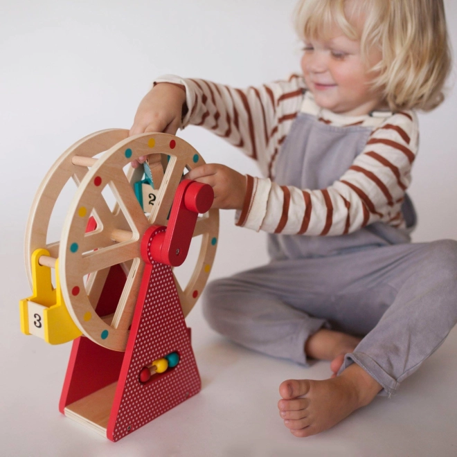 Bērni var viegli iegriezt lielo ratu ar izturīgo rokturi un vērot, kā kabīnes kustas vienmērīgi – lielisks koordinācijas un pacietības treniņš.