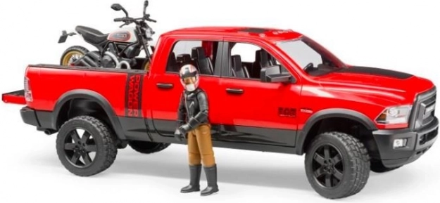 Bruder apvidus auto Ram ar motociklu Ducati Scrambler un figūriņu