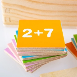 Koka mācību komplekts ar 81 spēles gabaliņu piedāvā daudzveidīgas iespējas saskaitīšanas un atņemšanas vingrinājumiem diapazonā 1–9. Pateicoties kompaktajai kastītei, tas ir ideāls lietošanai mājās, bērnudārzā un ceļā. Bērni rotaļājoties nostiprina pamatprasmes matemātikā un vienlaikus attīsta acu–roku koordināciju.