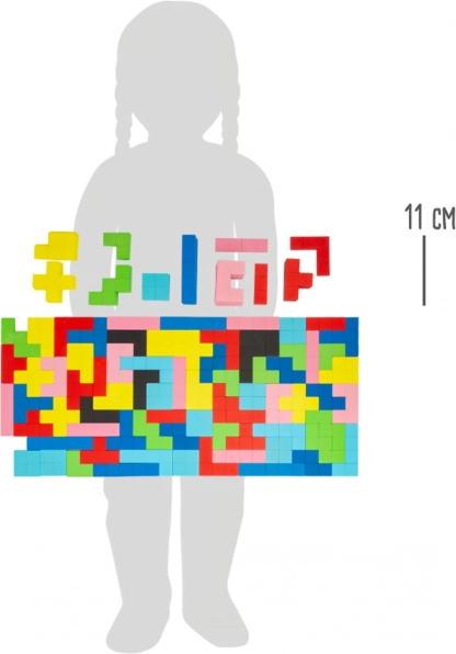 Šī universālā koka puzle piedāvā bezgalīgas mozaīku un attēlu kombinācijas. Bērni un pieaugušie trenē telpisko iztēli un pacietību, spēlējoties ar 13 dažādām formām 7 krāsās. Detaļas perfekti pieguļ un, pateicoties kvalitatīvai virsmas apstrādei, ir patīkamas turēt rokā.
