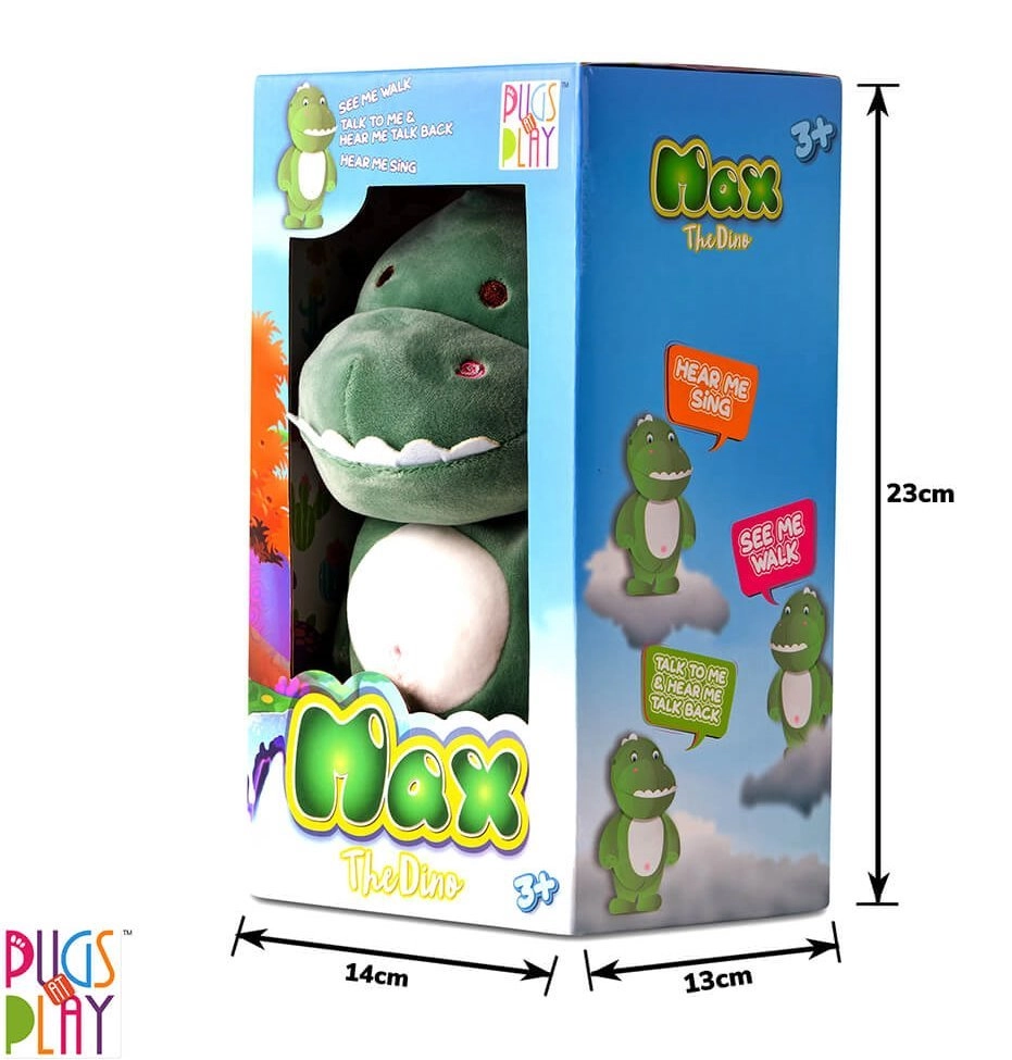 Interaktīvais dinozaurs Maks zaļš ir mīļš bērnu biedrs, kas ir ne tikai mīksts un patīkams pieskārienam, bet arī māca jaunus vārdus un sniedz izklaidi, atkārtojot vārdus čiepstošā balsī.