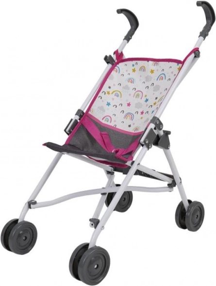 Draiskulīgs un praktisks golfa tipa saliekamais leļļu ratiņš varavīksnes dizainā iepriecinās ikvienu mazo māmiņu. Piemērots lellēm līdz aptuveni 46 cm, ar roktura augstumu aptuveni 54 cm, un pateicoties saliekamai konstrukcijai to ir viegli pārnēsāt un uzglabāt. Ideāli bērniem no 3 gadu vecuma.
