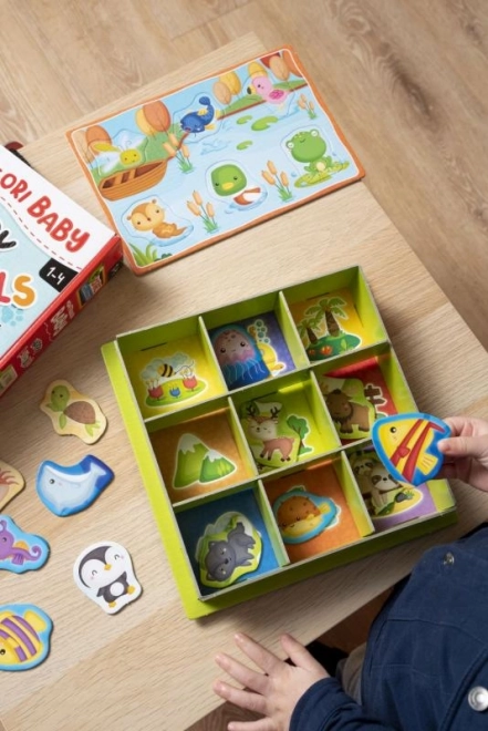 Montessori kastīte Dzīvnieki iepazīstina bērnus ar krāsainu dabas pasauli, izmantojot vienkāršu šķirošanu un salīdzināšanu. Bērni mācās atšķirt dzīvniekus un to dabiskās vides, attīsta loģisko domāšanu un roku–acu koordināciju. Pateicoties krāsainam un intuitīvam izpildījumam, spēli ātri apgūst pat paši mazākie.