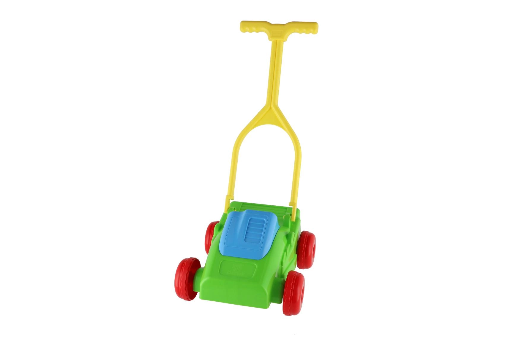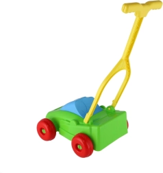 Plastmasas pļāvējs ir robusts un vienlaikus viegls, tāpēc bērni to var viegli stumt gan iekštelpās, gan ārā.