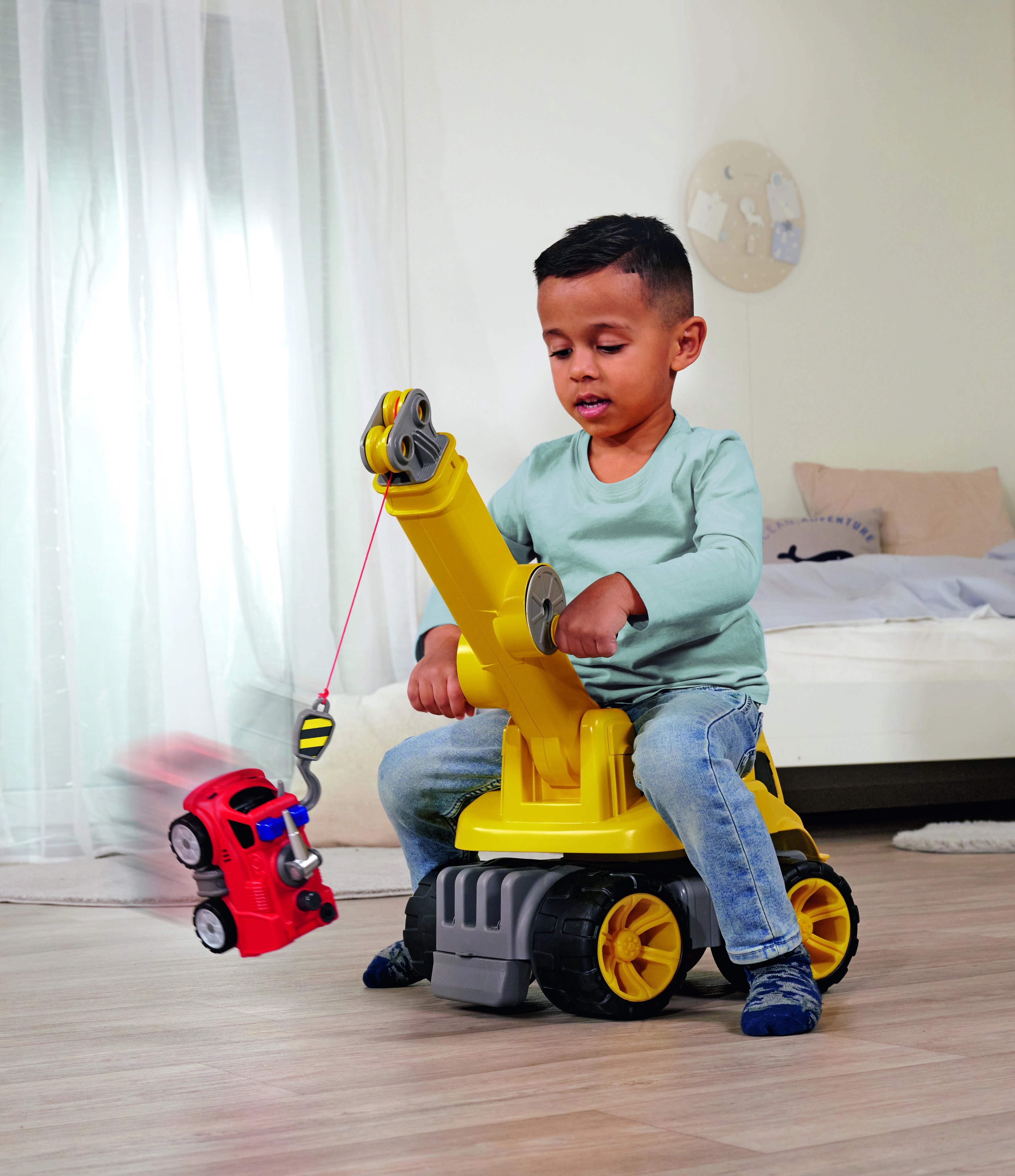 Tornis griežas ap savu asi par 360°, bet funkcionālā strēle ar izturīgu troses vinču (vilkmes spēks līdz 450 g) ļauj bērniem reālistiski celt un pārvietot priekšmetus.