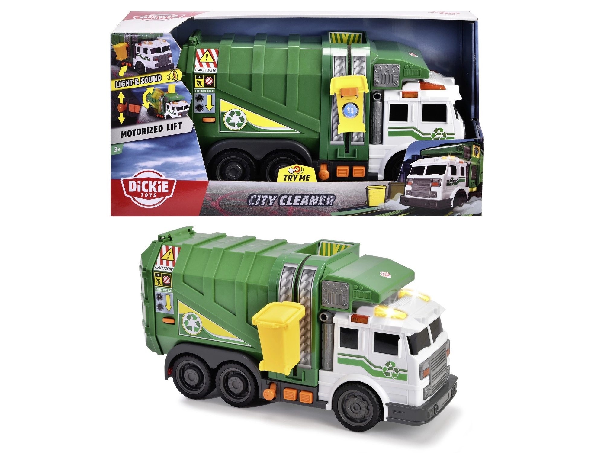Atklājiet izturīgu un detalizēti izstrādātu interaktīvu atkritumu mašīnu, kas uzticami atdarina īstu atkritumu savākšanu. Bērni var pievienot dzelteno konteineru, pacelt to ar sānu pacēlāju un iztukšot kravas nodalījumā. Gaismas bākuguni un skaņas efekti piešķir spēlei autentiskumu.