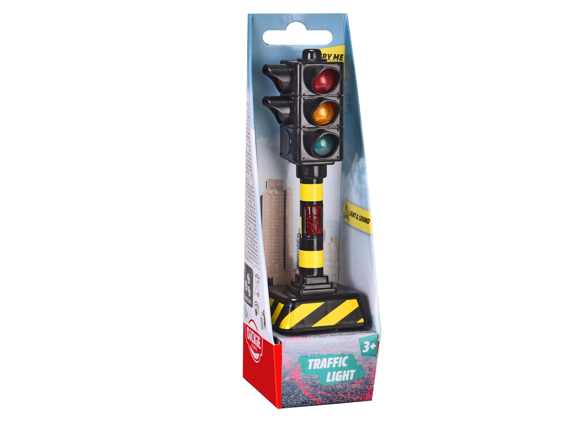 Reālistisks bērnu luksofors ar automātisku gaismu maiņu un skaņas efektu. Kompaktais 12 cm augstums der lielākajai daļai bērnu automašīnu un rotaļu komplektu.
