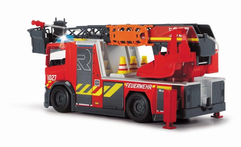 Liels ugunsdzēsēju auto SCANIA Rosenbauer ar garumu 35 cm sniedz bērniem realistisku, dinamisku izklaidi. Tas piedāvā gaismas un skaņas efektus, izvelkamu kāpni ar grozu, ūdens izsmidzināšanu, atveramus sānu paneļus, izvelkamas balstpēdas un praktiskas glābēju nestuves. Ideāli piemērots radošai glābšanas spēlei mājās un ārā.