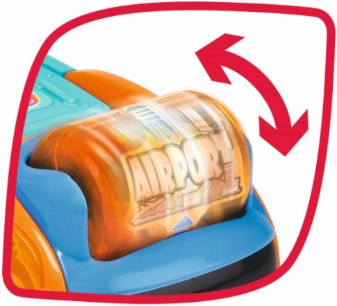 Interaktīvs elements ar patīkamu skaņu stimulē maņas un piešķir spēlei tēmas, piemēram, pilsētas līnijas vai lidostas maršrutu.