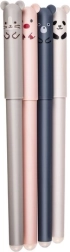 Komplektā ir 4 stilīgas dzēšamās pildspalvas pelēkā, baltā, rozā un zilā krāsā ar rotaļīgiem dzīvnieku motīviem (cūciņa, panda, pelīte, lācītis). Pateicoties termoreaktīvai tintei, sīkas kļūdas ir viegli izlabot – vienkārši izmantojiet dzēšgumiju pildspalvas galā un rakstiet no jauna, bez neizskatīgām svītrām.