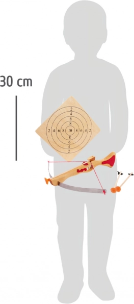 Izklaidējošs un drošs koka arbalets bērniem no 5 gadu vecuma trenē precizitāti un koordināciju. Tas šauj koka bultas ar piesūcekņiem, kas, pateicoties kvalitatīviem gumijas uzgaļiem, labi turas pie gludām virsmām. Komplektā ir mērķis un 2 bultas, tāpēc jautrība var sākties uzreiz.