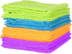 Praktisks 12 mikrošķiedras dvieļu komplekts ikdienas uzkopšanai virtuvē, vannasistabā un darbnīcā. Dvieļiem ir augsta uzsūktspēja, tie ir maigi pret virsmām un izmantojami gan sausā, gan mitrā veidā. Pateicoties krāsu atšķirībām, viegli noteikt to pielietojumu pēc telpas vai uzdevuma, bet vienkārša kopšana nodrošina ilgu kalpošanas laiku.
