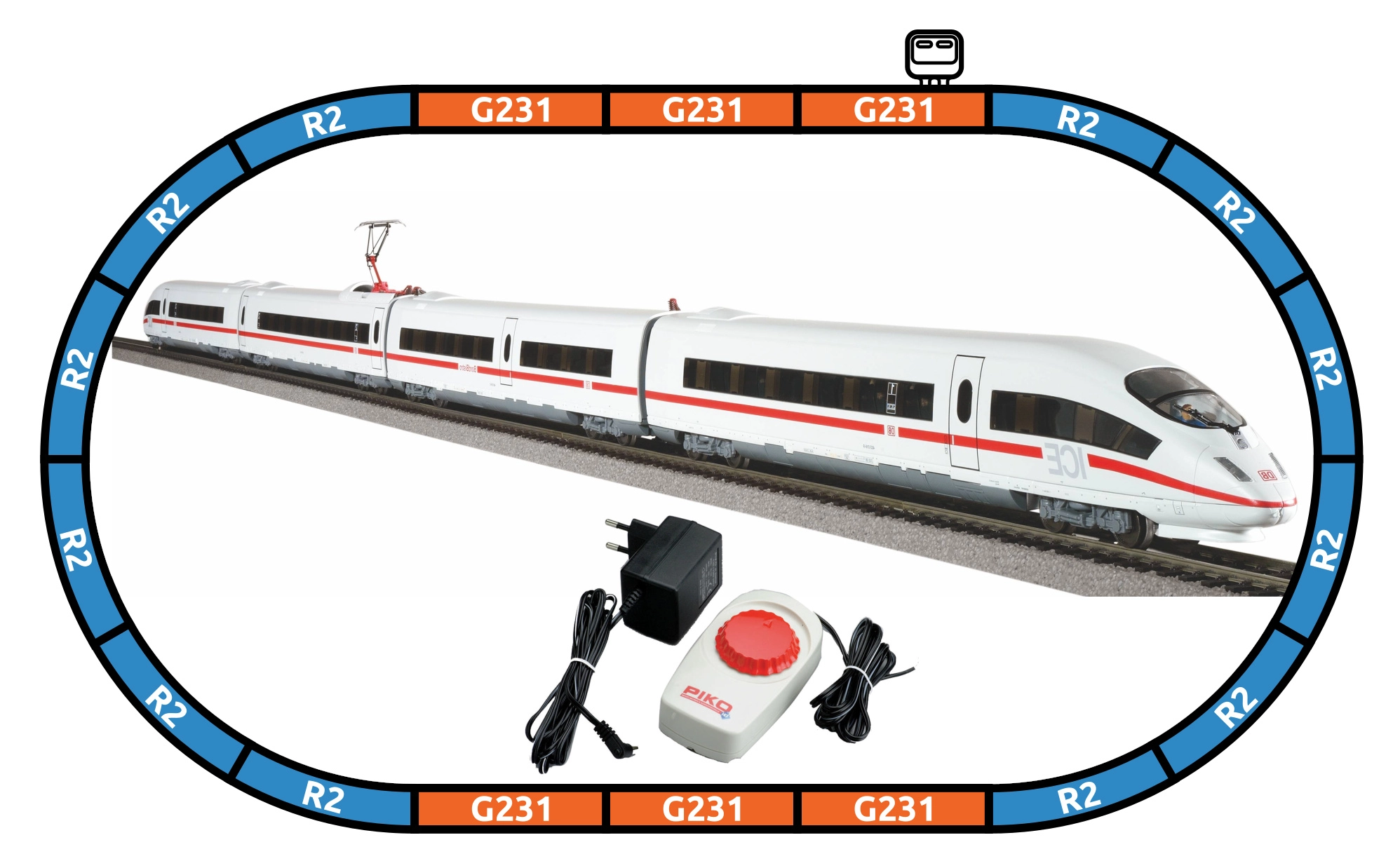 Šis kvalitatīvais starta komplekts ir ideāli piemērots gan iesācējiem, gan pieredzējušiem modelētājiem. Tas ietver četrdaļīgu elektrovilciena sastāvu ICE 3 Vācijas pārvadātāja DB AG, ovālu sliežu ceļu ar pamatni un pamata analogo kontrolieri ar barošanas avotu. Pateicoties NEM 652 saskarnei, lokomotīvi var viegli aprīkot ar digitālo dekoderi un skaņas moduli.