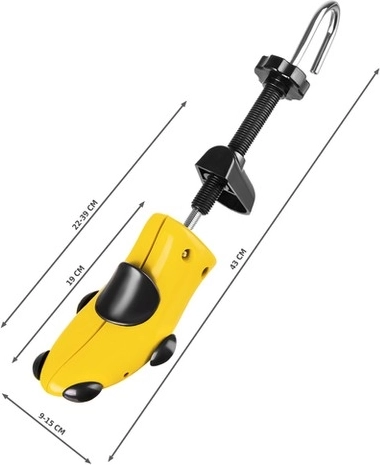 Ergonomiskais kopyts un skrūvju mehānisms ļauj smalki regulēt spiedienu saudzīgai apavu izstiepšanai bez bojājumiem.