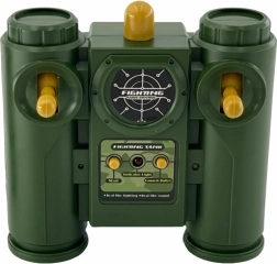 Ar pogu FIRE aktivizējiet skaņas un gaismas efektus. Rotējošo torni var vadīt ar augšējām pogām pa kreisi/pa labi precīzai apšaudei.