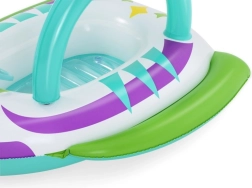 Jautrais uzpūšamais laiviņš BESTWAY Space Splash bērniem no 3 gadu vecuma piedāvā drošas rotaļas ūdenī, noņemamu jumtiņu ar UV aizsardzību, uzpūšamu dibenu ar peek‑a‑boo lodziņu un stūri ar tauri. Stilīgs “kosmisks” dizains un ērti rokturi nodrošina stundām ilgu prieku baseinā, pie ezera vai jūrā.