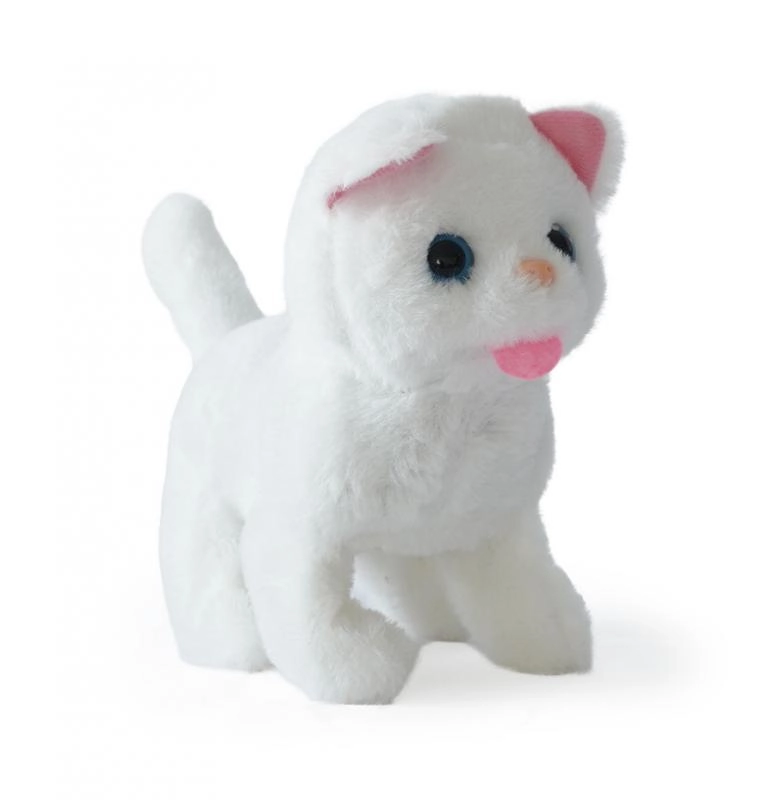 Mīlīga interaktīva kaķenīte ar baterijām, kas staigā, ņaud un kustina asti. Mīksta plīša rotaļlieta bērniem attīsta iztēli, sagādā prieku un ir ideāla gan rotaļām, gan mīļošanai.