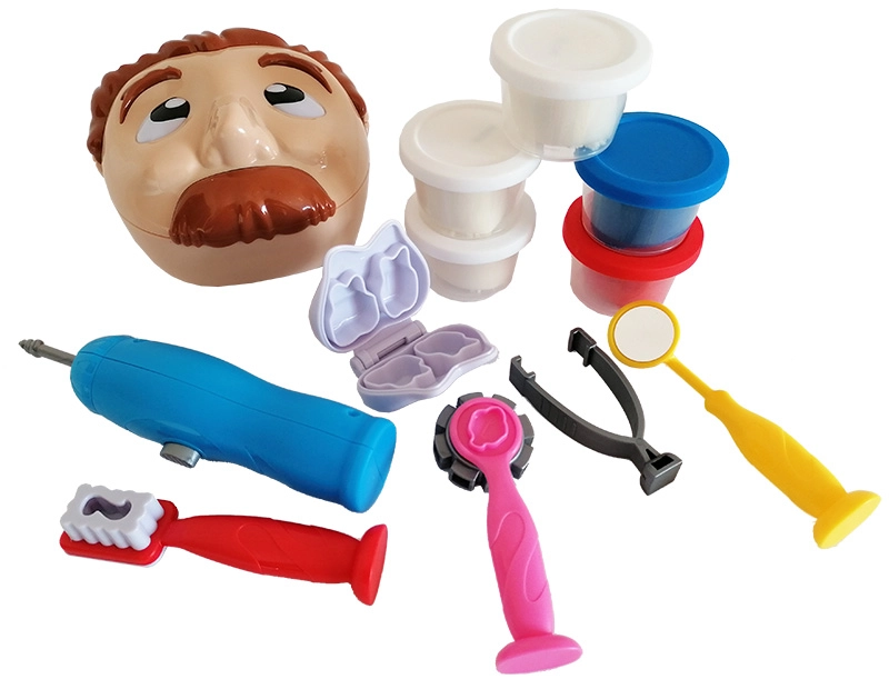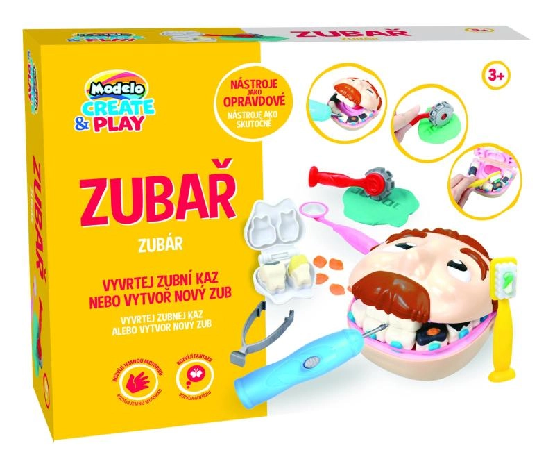 Pārvērtiet bērnus mazajos zobārstos ar radošo Modelo komplektu. Modelējiet zobus, urbiet kariesu, uzlieciet breketes un aizpildiet plombas – viss ar viegli veidojamu plastilīnu, kas . Spēle attīsta sīko motoriku, radošumu un palīdz mazināt bailes no zobārsta.