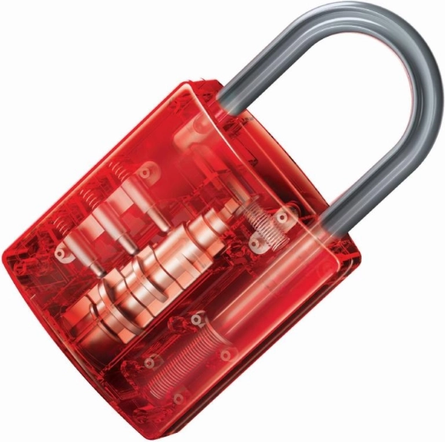 Slēdzenes dizains ļauj redzēt visus komponentus un saprast to funkciju.