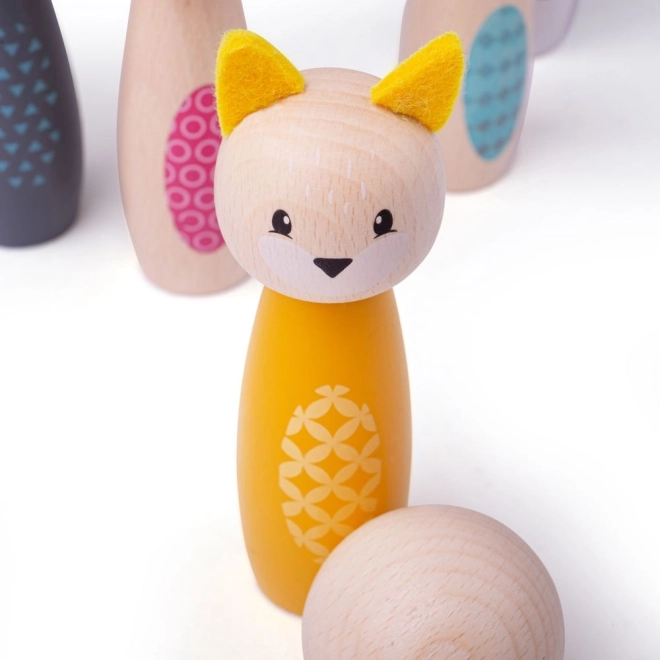 Ieprieciniet bērnus ar stilīgu kegelīšu komplektu un mīlīgiem dzīvnieciņiem – pūci, āpsi, briezi, kaķi, lāci un trusi. Košās figūriņas no kvalitatīva FSC sertificēta koka ir gludas, patīkamas taustei un izturīgas ikdienas spēlēm. Komplekts piemērots spēlēšanai mājās uz paklāja vai uz gludas grīdas.