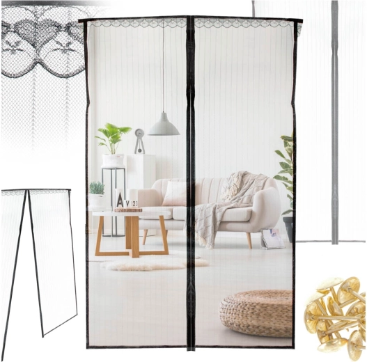 Šī magnētiskā moskītu tīkliņa sastāv no divām daļām, kas vidū automātiski savienojas, pateicoties spēcīgiem magnētiem. Tā ļauj ērti iziet pieaugušajiem, bērniem un mājdzīvniekiem, kamēr smalka sietauduma struktūra efektīvi neielaiž kukaiņus. Melnais noformējums ir neuzkrītošs un sader ar lielāko daļu interjeru.