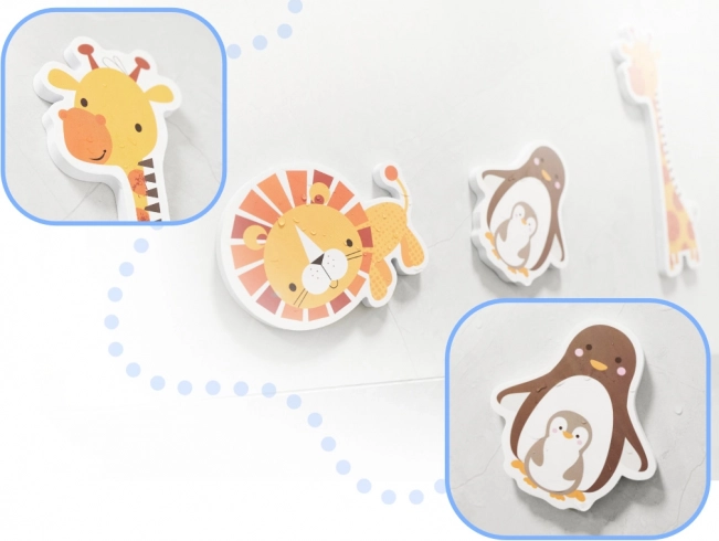 Atklājiet vannas rotaļu burvību ar košiem putu dzīvnieciņiem, kurus bērni viegli satver un var pielipināt pie mitrām flīzēm un vannas sienām. Gabaliņi ir mīksti, izturīgi un droši bērnu rokām – bez līmes, pietiek ar ūdeni.