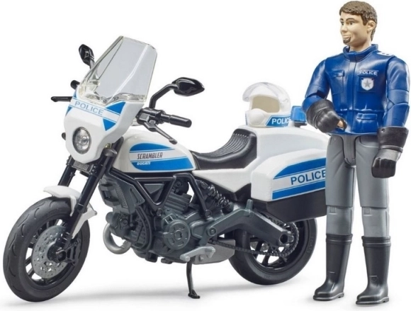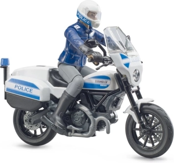 Policijas motocikls DUCATI Scrambler no Bruder ir izstrādāts modelis gan maziem, gan lieliem glābšanas dienestu cienītājiem. Motociklam ir grozāma stūre ērtai manevrēšanai un nolokāma atbalsta kāja stabilai novietošanai. Policista figūrai ir kustīgas locekļu locītavas, tāpēc to var iesēdināt braukšanas pozīcijā vai novietot blakus motociklam.