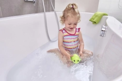 Šis mīlīgais vannas bruņurupucītis ir lielisks kompanjons mazajiem ūdens mīļotājiem. Tas peld pa virsmu un ar maigu strūklu šļaksta ūdeni, veicinot maņu uztveri un iedrošinot bērnus interaktīvām rotaļām vannošanās laikā.