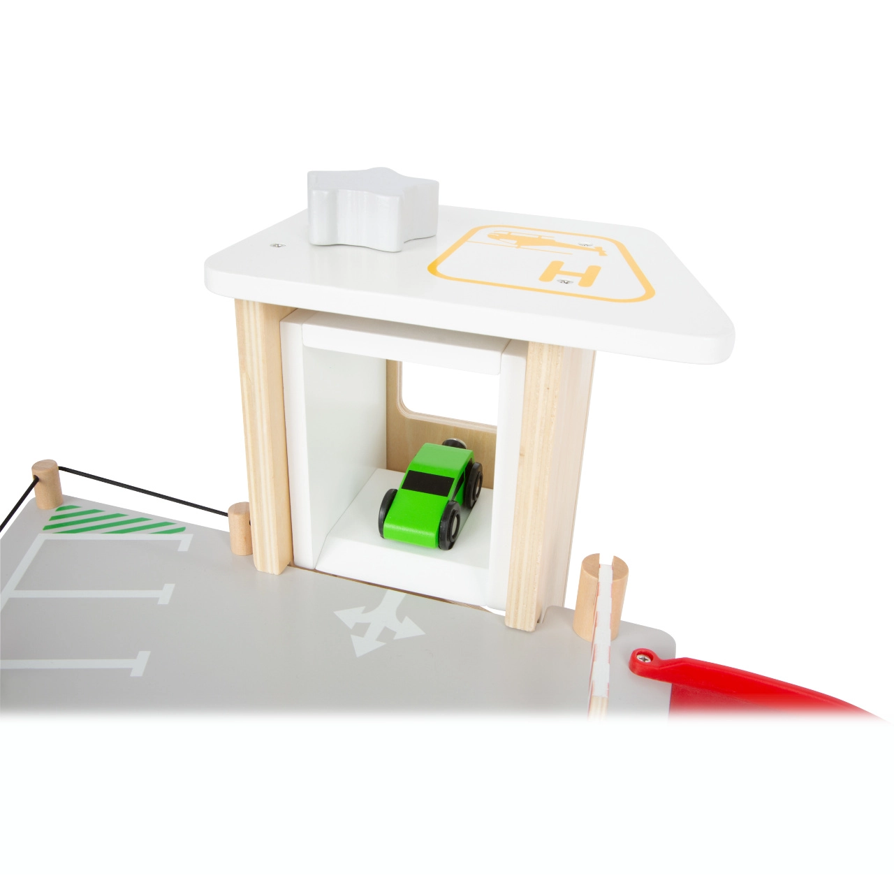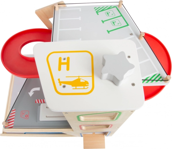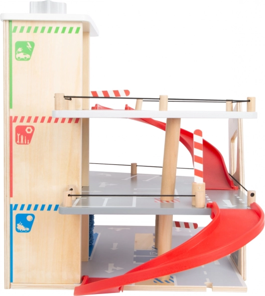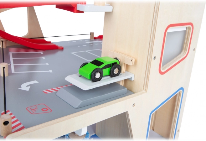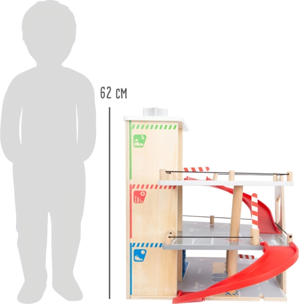 Šī premium klases autostāvvieta no kvalitatīvas koka saplākšņa piedāvā trīs bagātīgi aprīkotus stāvus, kas savienoti ar funkcionālu liftu un divām plūdenām rampām. Bērni var parkot, uzpildīt, uzlādēt, mazgāt un pat “remontēt” – viss vienuviet ar reālistiskām detaļām un lielisku spēļvērtību.