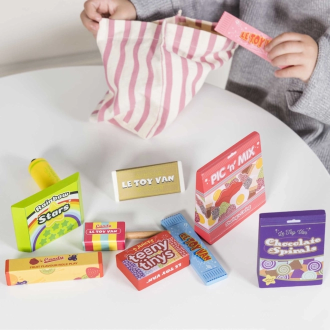 Iegremdējieties fantāzijas pasaulē ar mūsu unikālo Le Toy Van saldumu komplektu. Komplektā ir rūpīgi veidoti koka saldumi, kas veicina radošas rotaļas un bērnu prasmju attīstību.
