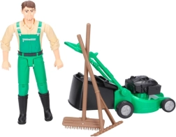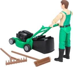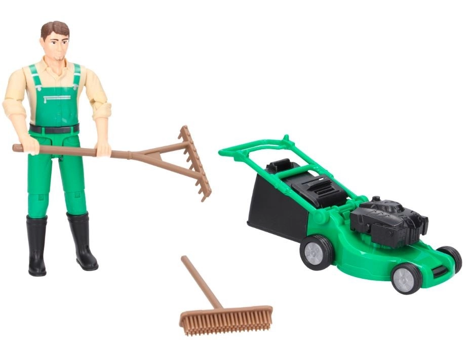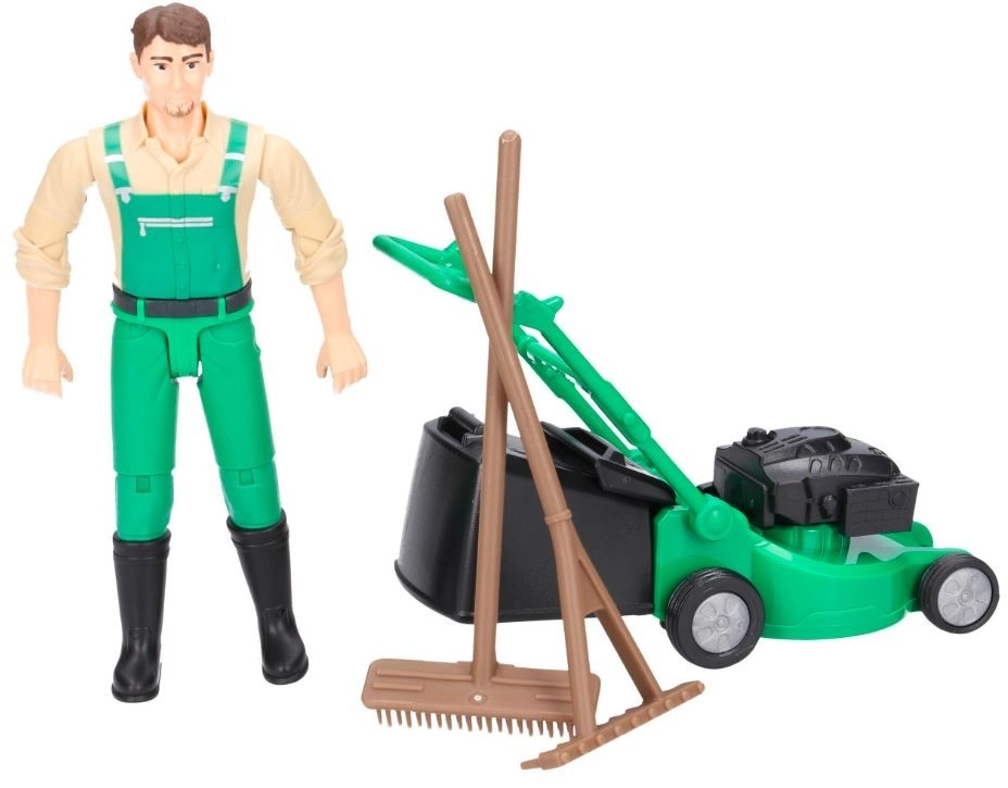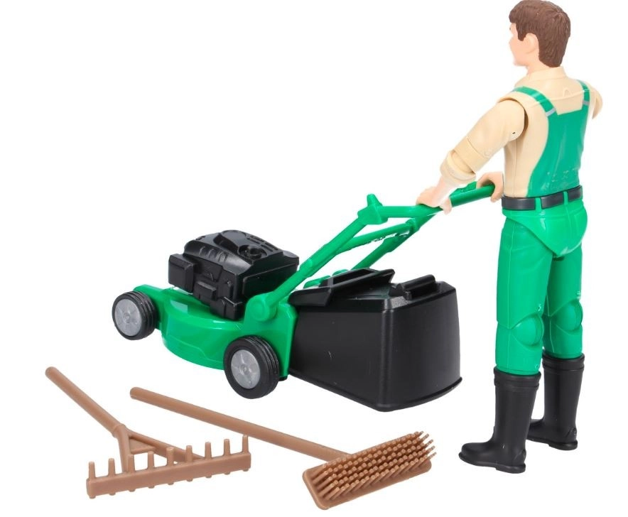 BRUDER BWORLD dārznieka komplekts ar zāles pļāvēju sniedz bērniem reālistisku rotaļu pieredzi zāliena kopšanā. Figūriņai ir locītas ekstremitātes un rokas, kas pielāgotas drošai darbarīku satveršanai, tāpēc tā var viegli stumt pļāvēju, grābt vai slaucīt.