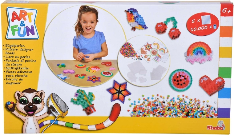 Atklājiet pikseļu veidošanas pasauli ar SIMBA ART & FUN gludināmo krellīšu komplektu. Iepakojumā atradīsiet 10 000 krāsainu krellīšu un 5 atkārtoti lietojamas pamatnes, uz kurām varat salikt jebkurus motīvus. Pārklājot ar cepamo papīru un pieaugušajam viegli nogludinot, krellītes saplūst un sacietē par noturīgu dekoru.