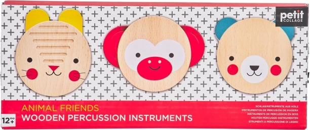 Šis rotaļīgais trīs perkusiju instrumentu komplekts no Petit Collage ir ideāls ievads mūzikas pasaulē. Jautrie dzīvnieku motīvi (mērkacis, lācis un trusītis) iedvesmo bērnus atklāt ritmus un skaņas, kas veicina dabisku dzirdes un sensorās uztveres attīstību.