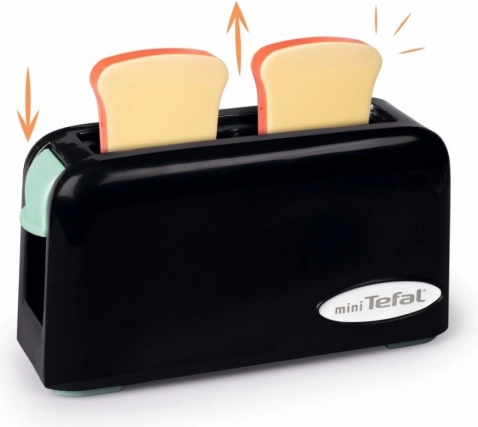 Mini Tefal bērnu tosteris ir ideāla rotaļlieta bērniem, kuri vēlas atdarināt darbu virtuvē. Vienkārši ievietojiet plastmasas šķēles tosterī un nospiediet slēdzi mehāniskai izspiešanai.