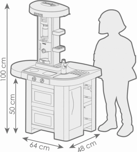 Laipni lūgti gatavošanas rotaļu pasaulē ar Smoby Studio Tech Edition virtuvi. Šī kompaktā un stabilā virtuve piedāvā plašu spēļu laukumu, kas ļauj bērniem atklāt radošumu gatavojot no visām pusēm.