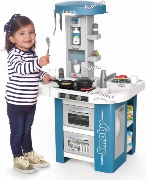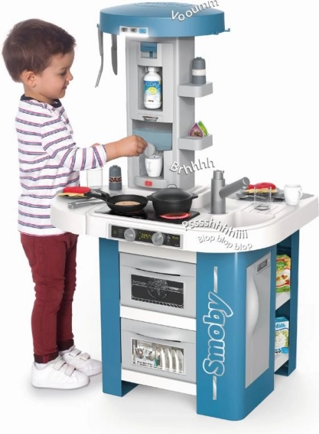 Papildu aprīkojumā ietilpst cepeškrāsns, trauku mazgājamā mašīna, ledusskapis, izlietne ar tekošu ūdeni, soda automāts un virkne glabāšanas vietu. Komplektā ir 35 jautri aksesuāri, tostarp virtuves piederumi, kas papildina autentisku gatavošanas rotaļu pieredzi.
