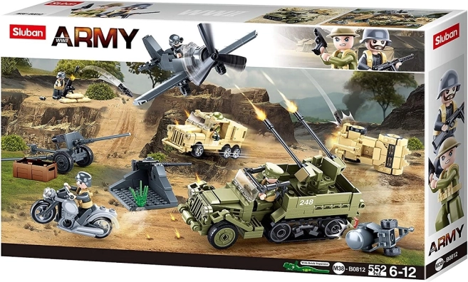 Ar komplektu Sluban Army militārie transportlīdzekļi jūsu bērni atklās stundām ilgu izklaidi un radošumu. Komplektā ir 551 detaļa un 5 figūriņas, kas ļauj bērniem iegrimt militārajā pasaulē. Visas detaļas ir izgatavotas no kvalitatīva un droša ABS plastmasas, kas garantē izturību un ilgmūžību.