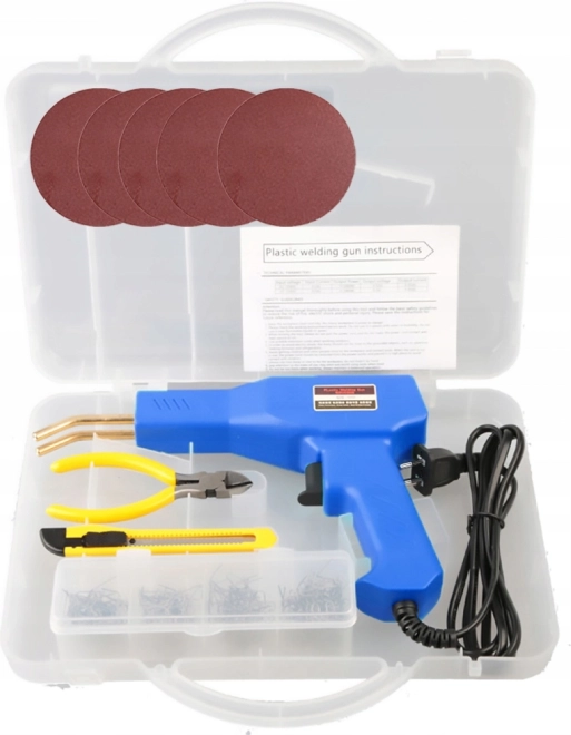 - Komplekts ar 200 skavām plastmasas metināšanas ierīcēm un metināšanas pistolēm
