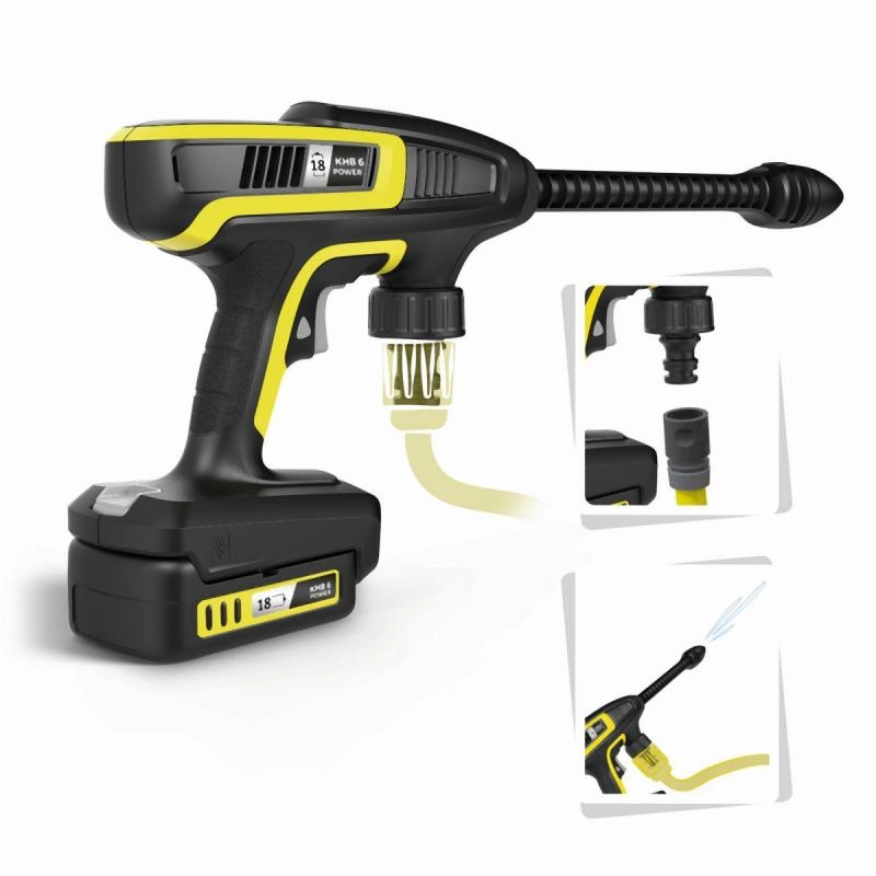 Dizains, kas balstīts uz oriģinālo Kärcher pistoli, piešķir bērnu spēlei patiesu tīrīšanas pieredzi.