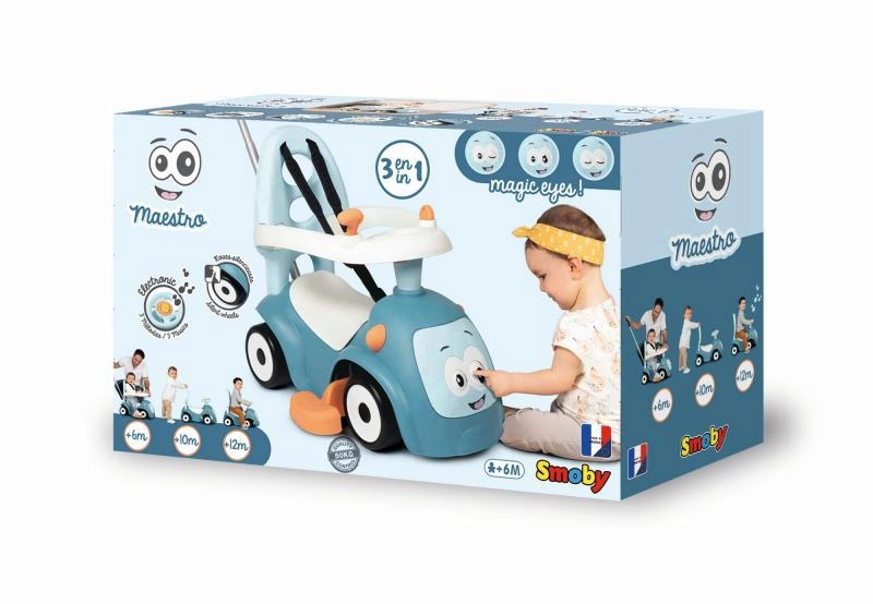 SMOBY Maestro 3-in-1 ir ideāls sabiedrotais pašiem mazākajiem, aug līdzi jūsu bērnam. Šī stumjamā mašīna apvieno trīs funkcijas – braucamrīks ar vadības kātu, staigulītis un stumjamā mašīna – nodrošinot bezgalīgas izklaides un kustību stundas.