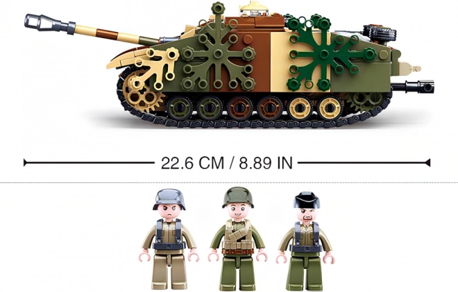 Modelis maskēšanās krāsās ar rotējošu torni, lielgabalu un funkcionālām kāpurķēdēm nodrošina autentisku izskatu un spēlējamību.