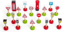 Atklājiet rotaļīgu 18 koka ceļa zīmju komplektu, kas lieliski papildina jebkuru vilcieniņu trasi un pilsētas ainu. Pateicoties izturīgai koka konstrukcijai un skaidriem simboliem, bērni viegli apgūst ceļu satiksmes noteikumus. Komplekts ir saderīgs ar lielāko daļu koka vilcieniņu komplektu tirgū un veicina bērnu iztēli un sīko motoriku. Kvalitatīvs koks, drošs izpildījums un izglītojoša rotaļa vienā.