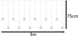 Spuldzītes ir uzstādītas uz izturīga, bieza kabeļa ilgai kalpošanai, un tās piedāvā 8 dažādus apgaismojuma režīmus, lai pielāgotu noskaņu pēc garastāvokļa. Nav nepieciešamas baterijas — vienkārši pievienojiet tīklam un izbaudiet svētku mirdzumu.