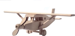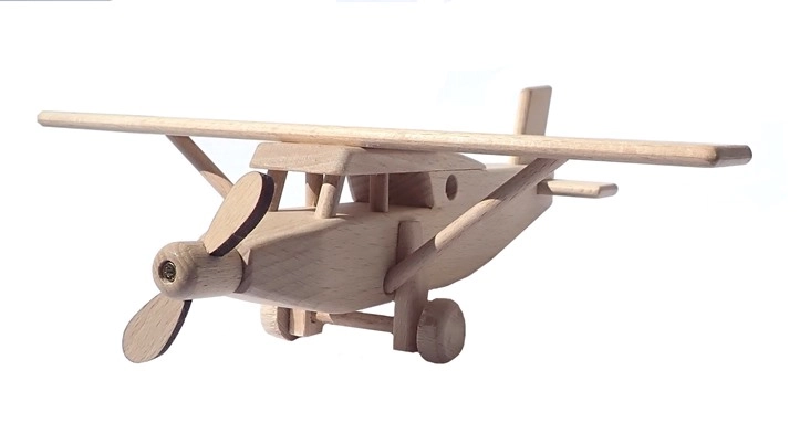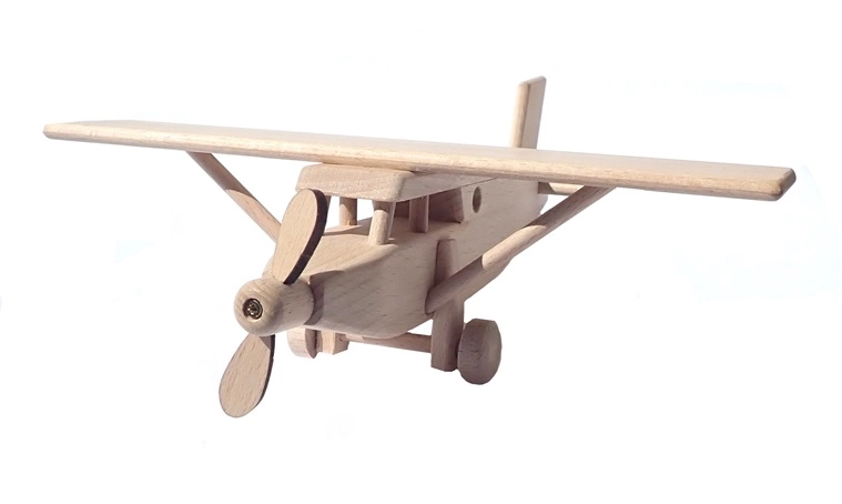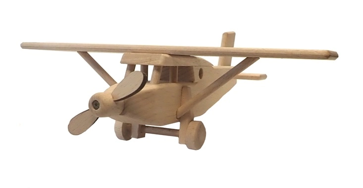 Šis rūpīgi izstrādātais koka lidmašīnas modelis ir izgatavots no masīva dižskābarža koka un atstāts dabiska izskata – tikai vaskots un pulēts, bez ķīmiskas apstrādes un krāsvielām. Pateicoties precīzajam izpildījumam un gludajai virsmai, tas lieliski ieguļ bērna plaukstā un veicina iztēles un smalkās motorikas attīstību.