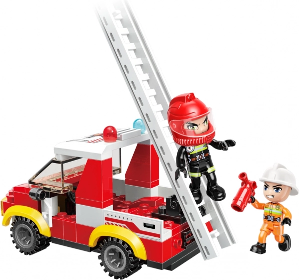 Dodieties uz izsaukumu ar lielisku ugunsdzēsēju auto ar kāpnēm komplektu, kurā ir 101 detaļa, 2 ugunsdzēsēju figūriņas un kustīgas kāpnes reālistiskām glābšanas ainām. Komplekts ir saderīgs ar LEGO un citām zīmoliem, izgatavots no kvalitatīva ABS plastmasas un lieliski attīsta bērnu iztēli un sīko motoriku no 6 gadu vecuma.
