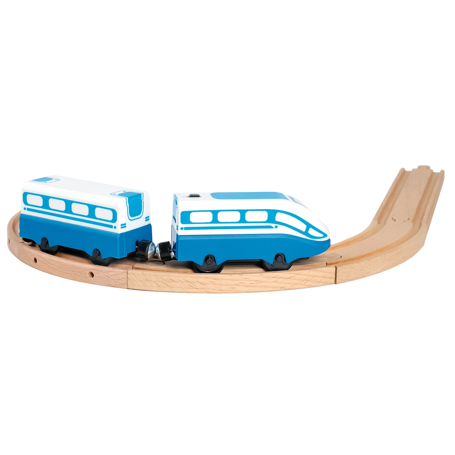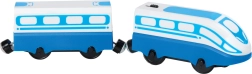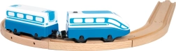 Šī ātrgaitas elektriskā lokomotīve ar vagoniņu ir ideāls papildinājums jebkurai koka vilciena trasei. Pateicoties kompaktajiem izmēriem, vienkāršai vadībai un magnētiskajam savienojumam, tā sniegs bērniem stundām ilgu izklaidi un vienlaikus attīstīs sīko motoriku un iztēli.
